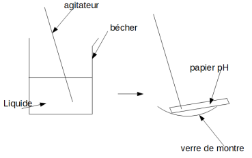 On regarde la couleur du papier pH et on la compare avec l'échelle de teinte pour déterminer le pH.