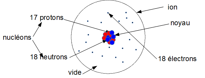 ${{18~électrons~(-)} \\ {17~protons~(+)}} \\ -> 1~(-)$