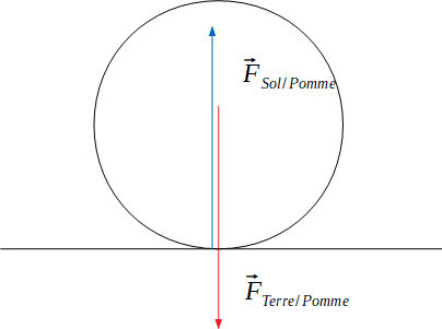 valeur : 1,5 N car l a pomme est en équilibre, les forces se compensent