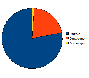 L'atmosphère terrestre est un mélange homogène de plusieurs gaz : environ 80% de diazote,environ 20% de dioxygène(moins de 1% de dioxyde de carbone et d'argon).