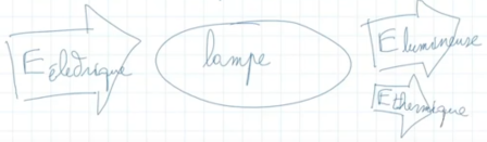 Un générateur transfère de l'énergie électrique à une lampe (ou à un moteur) qui la convertit en d'autres formes (énergie lumineuse pour la lampe).