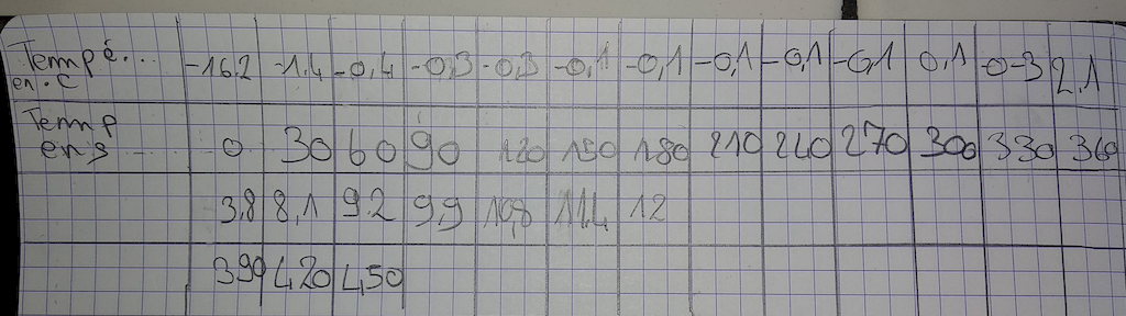 Évolution de la température en fonction du temps lors de la fusion de l'eau
