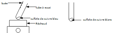 Sulfate de cuivre anhydre avec de l'eau et de l'huile :
