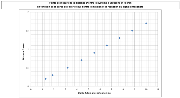 5. Entourer sur le graphique de l’annexe à rendre avec la copie le point correspondant à la mesure réalisée pour D = 1,3 m.