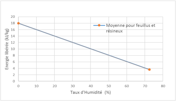 Document 1 : Énergie libérée lors de la combustion de 1 kilogramme de bois en fonction du taux d'humidité exprimé en pourcentage.