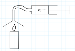 - placer au dessus de la bougie l'entonnoir avec le tuyau et la seringue puis on aspirer le gaz issu de la combustion
