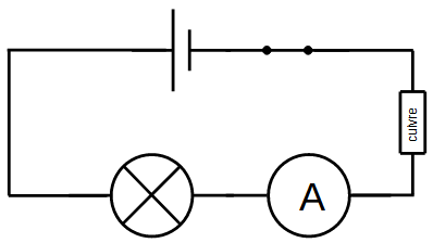 1.3. On devrait voir la lampe briller davantage dans le cas du cuivre.