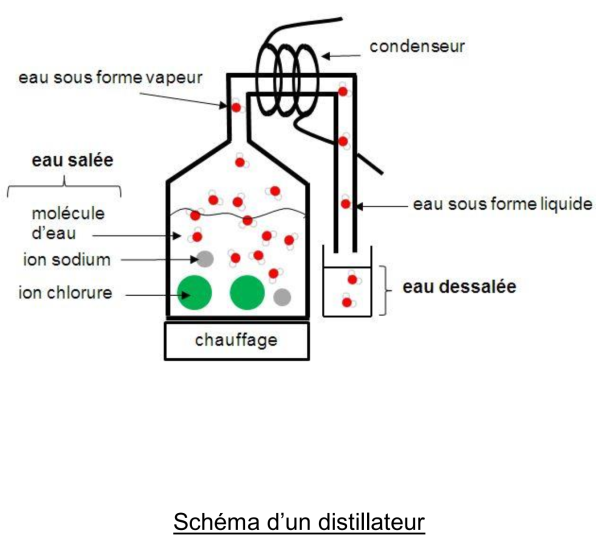 On s’intéresse aux deux techniques les plus utilisées pour dessaler l’eau de mer : la distillation et l'osmose inverse .