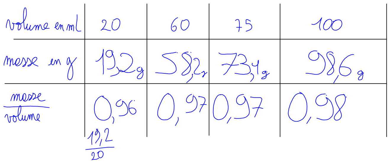 Si on veut exprimer la masse volumique en g/cm3 , il suffit de faire le calcul en utilisant une masse en g et un volume en cm3 .