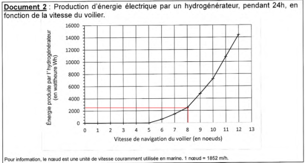 Pour produire 2500Wh, il faut avoir une vitesse de 8 noeuds minimum.