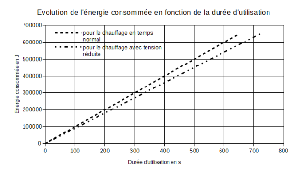 Lorsque la tension du réseau sera diminuée de 5 %, combien de temps faudra-t-il pour obtenir la même énergie que précédemment ? Indiquer sur le graphique où la valeur est lue.