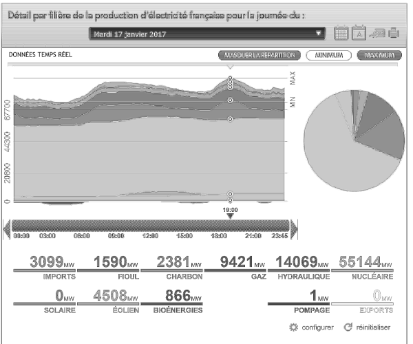 Document n°1 : Production d’électricité par filière en France pour la journée du Mardi 17 janvier 2017 (http://www.rte-france.com/fr/eco2mix/eco2mix-consommation)